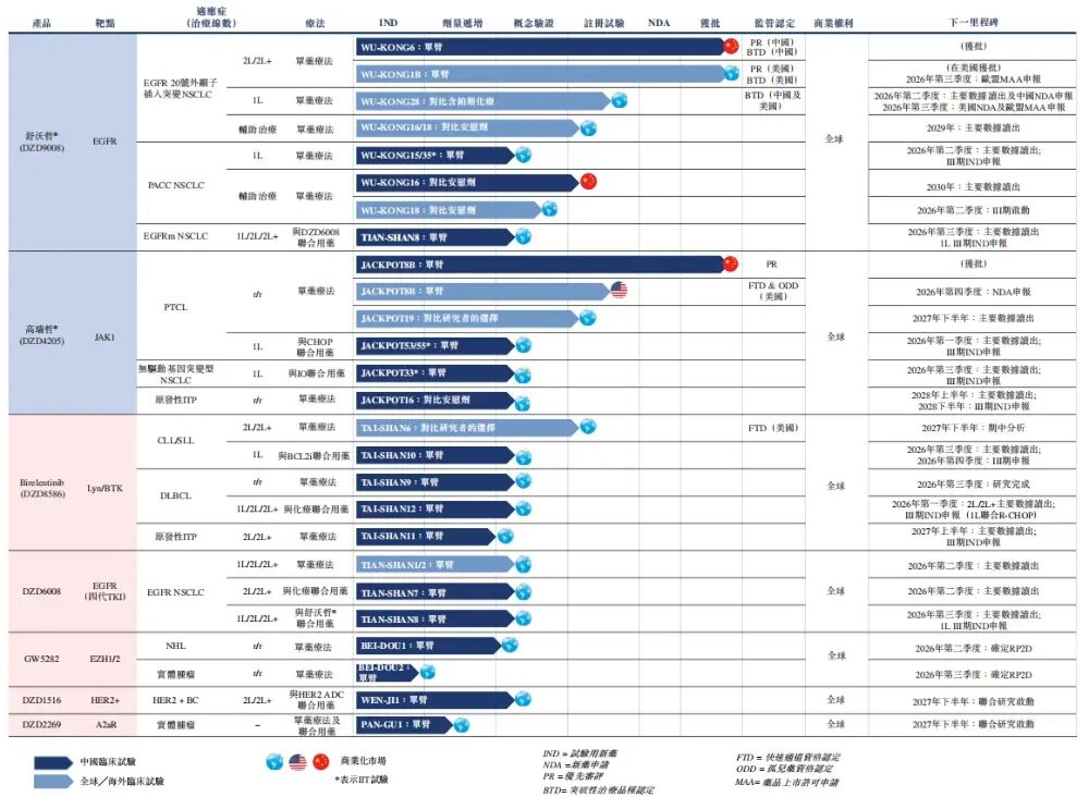 已構建起豐富且具有競爭力的產品管線。其中包括兩款獲批藥物(「舒沃哲®和高瑞哲®」)、一款處於註冊性臨牀階段的候選藥物、三款處於概念驗證后階段的資產,以及一款處於早期臨牀階段的資產。
