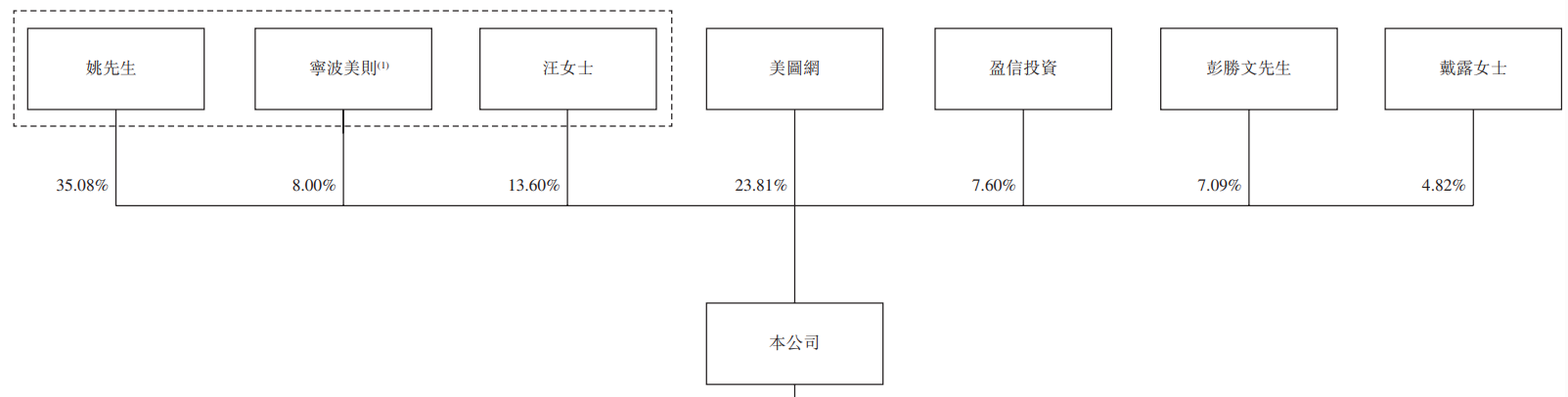 通過持有寧波護家(99%股權)控制寧波美則(持股平臺),寧波美則直接持股8.00%,同時通過投票代理安排獲得盈信投資、彭勝文先生、戴露女士所持股份對應的19.51%投票權,合計控制公司76.19% 投票權
