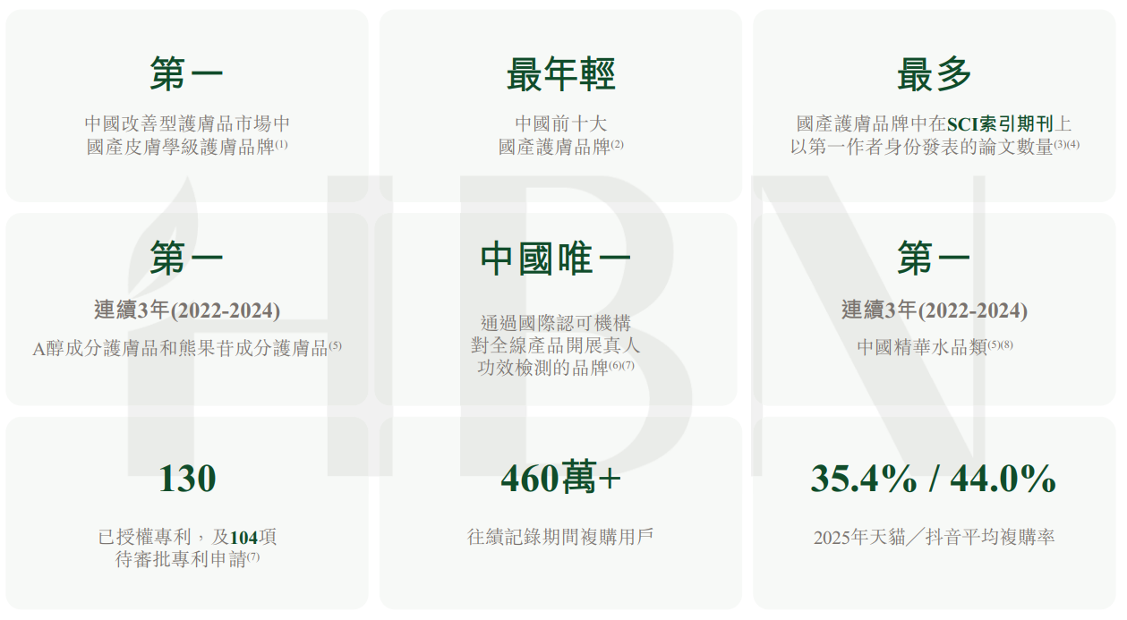 中國領先的皮膚學級護膚品牌,也在改善型護膚品市場中位居前列。2019年,HBN品牌為看得見的真功效而生,「讓真功效名副其實」,滿足消費者對具科學實證護膚效果的日益增長需求。