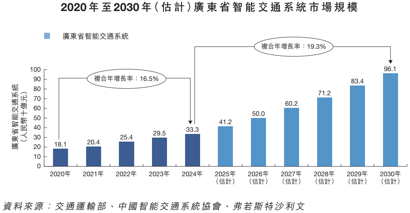 的報告,作為中國智能交通應用先鋒,廣東省在全國市場中佔據主導地位。廣東省智能交通系統市場規模由2020年約人民幣181億元增長至2024年人民幣333億元,複合年增長率約為16.5%。