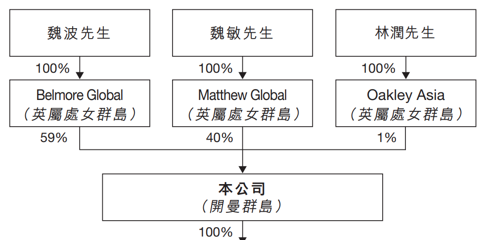 魏敏先生通過全資擁有的Matthew Global持股,魏波先生通過全資擁有的Belmore Global持股,兩人合計控制公司99%股份