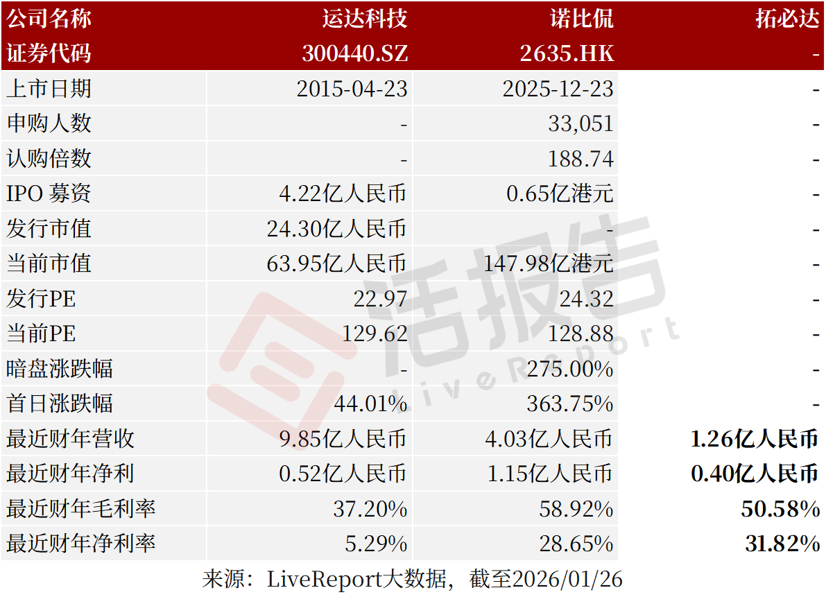 運達科技(300440.SZ)、諾比侃(2634.HK)