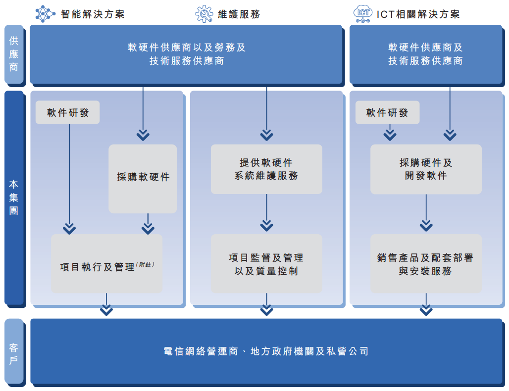 的運營模式在各業務領域保持一致,圍繞三條業務線展開:(i)智能解決方案、(ii)維護服務及