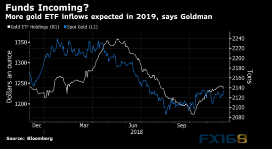 高盛指出,受周期末尾對另類投資組合多元化渠道的需求推動,黃金ETF資金流入量在2019年料將擴大。