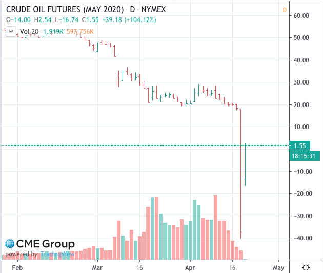 這使得所有持有5月合約的人,都只能被迫拋出,最終形成最慘烈的多殺多,才造成了石油期貨史上首次跌成負數,「我倒貼錢求求你把石油運走吧」的活久見一幕。