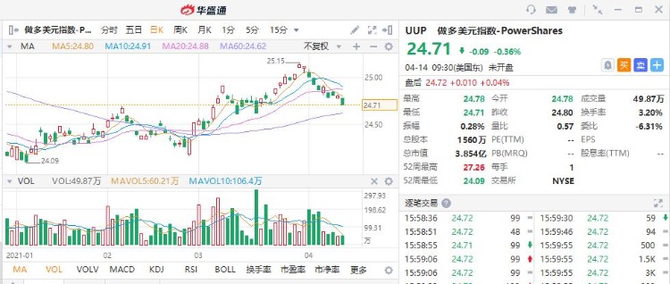 Invesco DB US Dollar Index Bullish Fund (NYSE:UUP)跟蹤的是ICE期貨交易所旗下的美元指數期貨合約,該基金成立於2007年2月,管理的資金約為3.87億美元。做多UUP就意味着看多美元,尤其是美元兑歐元。