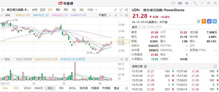 有幾種理由可以讓你把UDN加入你的投資組合:例如,看空美元兑歐元的交易員可以做多UDN;另外,其他市場參與者可能將UDN視為更廣泛美國指數的代表,簡單來説,疲軟的美元通常意味着美國更廣泛市場的走強。因此,那些看好美國股市的人往往會預期美元貶值,此時,他們就可以做多UDN。