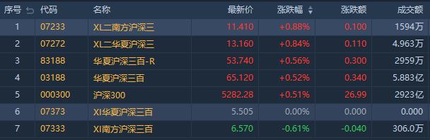 滬深300指數收漲0.51%。其中,華夏滬深三百-R(83188.HK)漲0.56%,成交額2959萬港元;華夏滬深三百ETF(03188.HK)漲0.52%,成交額5.88億港元。