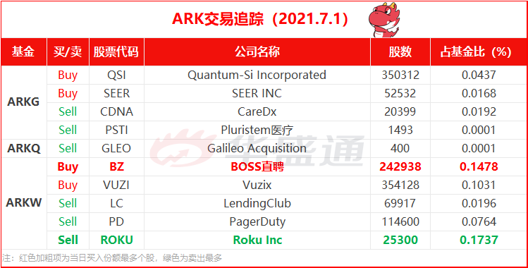 ARK上日投資清單:《ARK每日追蹤 | 新寵現身!連續三日大買BOSS直聘近80萬股》