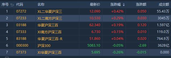 滬深300指數收跌0.05%。其中,華夏滬深三百-R(83188.HK)漲0.04%,成交額達764.9萬港元;華夏滬深三百ETF(03188.HK)漲0.19%,成交額約1.60億港元。