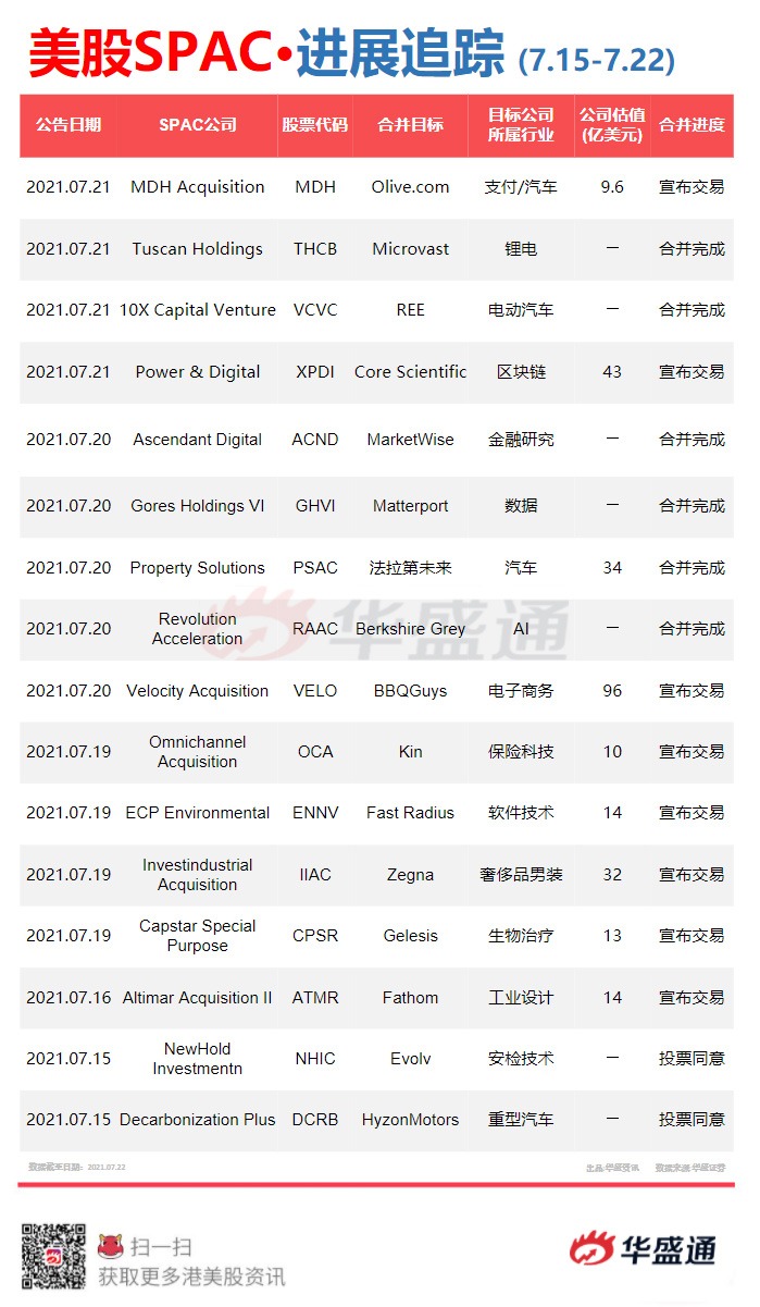 本周市場最受關注的SPAC交易,當屬PSAC和法拉第未來合併上市。法拉第未來於本周四正式掛牌納斯達克,以股票代碼「FFIE」開始交易。據瞭解,上市后法拉第未來將拿到價值10億美元的新融資,目前公司估值約為34億美元。