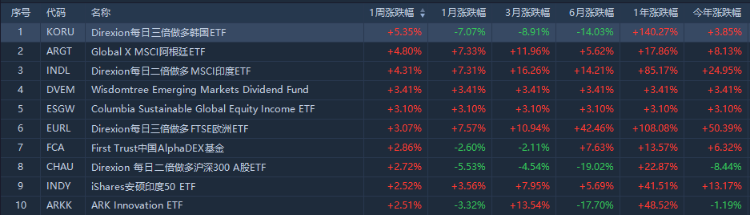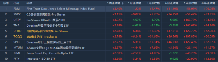 1、本周美股ETF漲幅榜