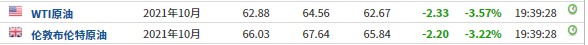 截至發稿,WTI原油跌3.57%,報62.88美元/桶。布倫特原油跌3.22%,報66.03美元/桶。