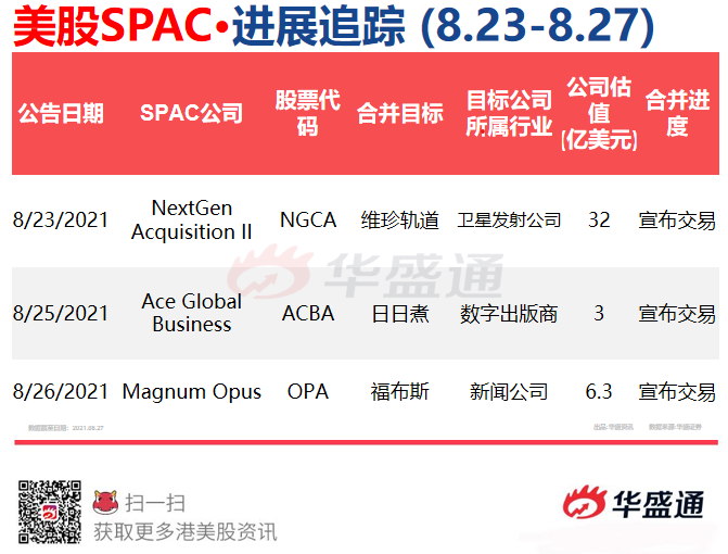 本周通過SPAC上市的公司有三家,分別為維珍軌道、日日煮、福布斯三家公司。