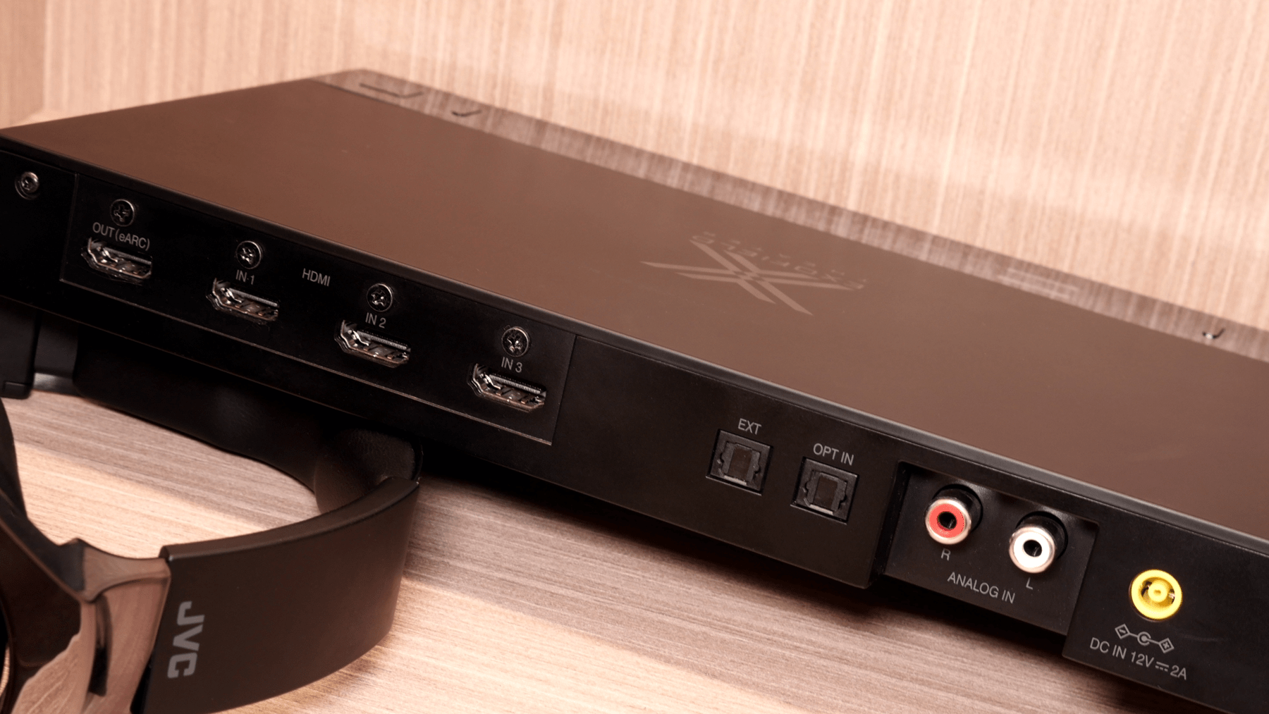 也可以同時接駁遊戲機、藍光機或者各種電視盒子之類的設備(一共三個HDMI設備),這樣的話,打遊戲或者看別的盒子給出的片源也都是可以的。而且它還有同軸接口以及雙蓮花接口,萬一電視上沒有ARC或者eARC接口那也可以選擇使用這兩個接口,效果會有點打折扣不過依然跟別的耳機會完全兩碼事。