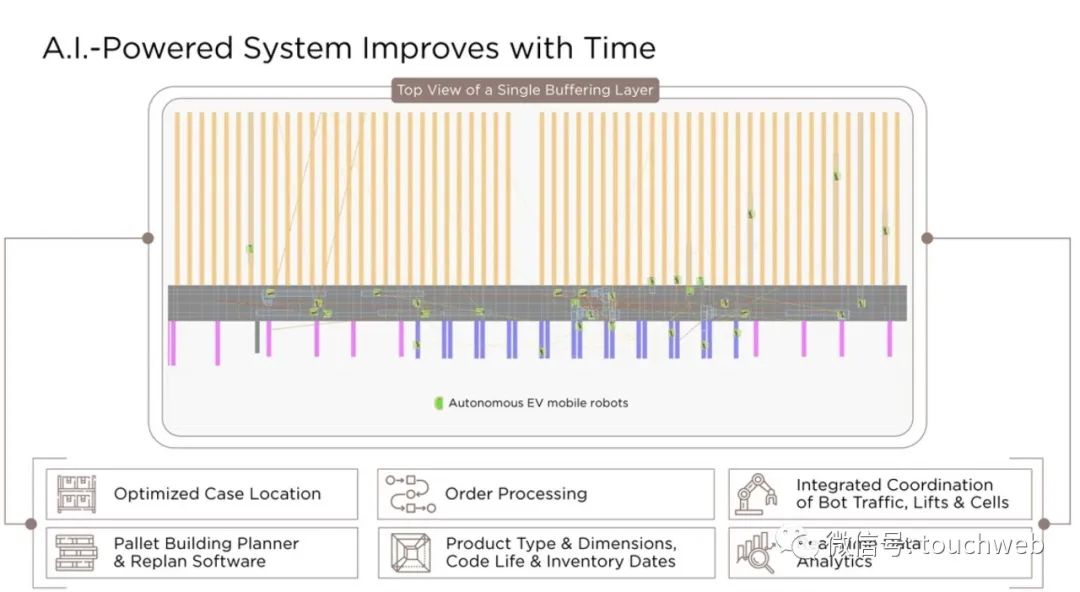 有了這個系統,零售商可以在門店附近建小型倉庫,也可以讓一個倉庫服務於更多門店。Symbotic可以24小時連軸運轉,而且機器工作無需照明,耗能將減少35%,勞動力成本則可降低80%。