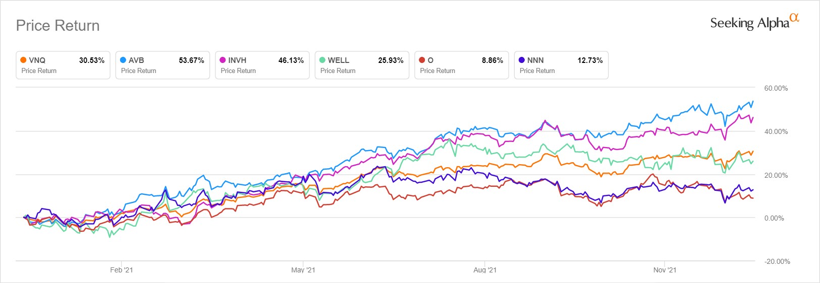 根據下面的圖表,在同比和環比的基礎上,成長型REIT似乎以相對較大幅度的回報率跑贏價值REIT。