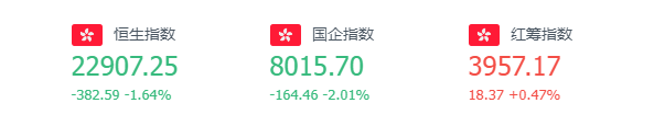 周三收盤,恆指跌1.64%,報22907.25點,國企指數跌2.01%,紅籌指數漲0.47%。恆生科指重挫4.63%,美團跌超11%,嗶哩嗶哩跌近11%,京東、快手跌超7%,騰訊、百度跌超4%。