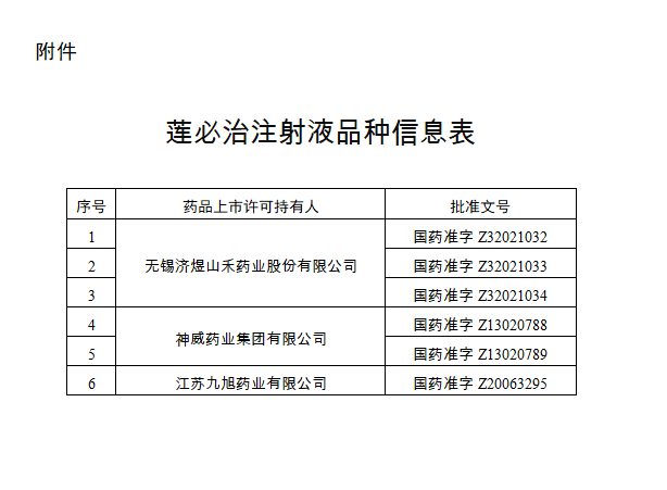 經評價,國家藥品監督管理局決定自即日起停止蓮必治注射液在我國的生產、銷售、使用,註銷藥品註冊證書。已上市銷售的產品,由藥品上市許可持有人負責召回,召回產品由所在地省級藥品監督管理部門監督銷燬或者依法採取其他無害化處理等措施。