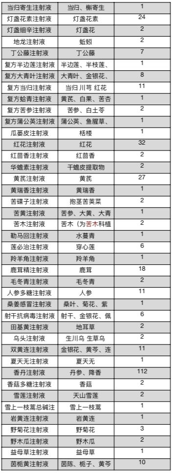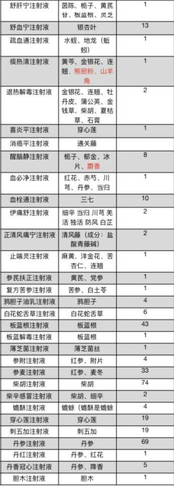 據此前國家藥品不良反應監測年度報告顯示,2019年中藥不良反應/事件報告中,注射劑所佔比例是62.8%。所有注射劑報告中,中藥注射劑佔9.1%。2019年中藥注射劑不良反應/事件報告排名前3位的分別是理血劑、補益劑、開竅劑。