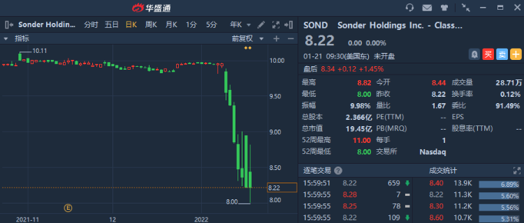 1月18日,SPAC公司Gores Metropoulos II $GMII 宣佈,其股東已於1月14日批准了與「下一代」酒店公司Sonder Holdings $SOND 的合併。Sonder昨日盤后漲超1%,當期市值約為19億美元。