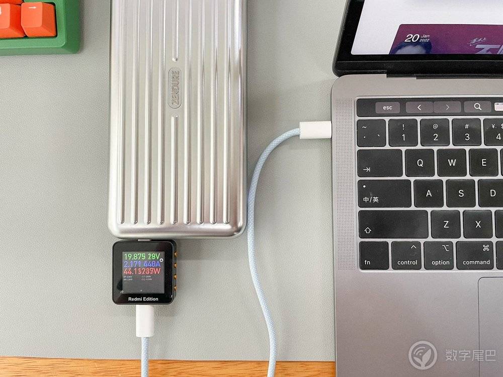 我經常用 100W 接口給 MacBook Pro 充電,穩定無壓力,外殼也沒有出現發熱問題。不過接近 1 斤的重量攜帶起來不方便,通常出差有行李箱時纔會攜帶。