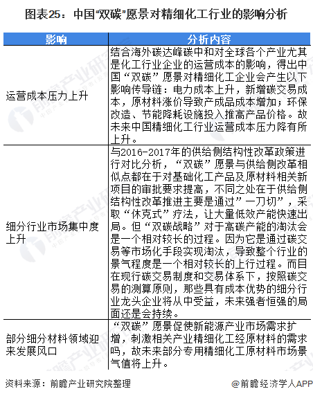 「雙碳」戰略實際上通過帶有約束條件的發展,不斷優化行業結構,提升行業技術水平,促進經濟朝更高質量和更可持續的方向發展。據2021石化產業發展大會發布的分析,未來「雙碳」戰略的提出將對精細化工行業的運營模式、產品結構等將產生顛覆式影響,也將推動業內細分市場景氣度提升。