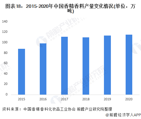 從近年來中國香精香料產量和銷售收入統計情況看,香精香料行業呈現穩步增長的態勢,香精的生產已基本滿足人民生活和工農業生產的需求,產量由2015年的88萬噸增長至2019年的113萬噸,結合2020新冠疫情對香精香料不同產品部門的影響差異,經過初步估算,2020產量將保持小幅增長,將達到115萬噸左右。
