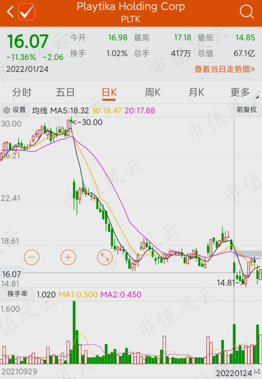 2022年1月24日,Playtika發表聲明,最大股東正在進一步計劃套現,當日股價再次暴跌了15%以上。