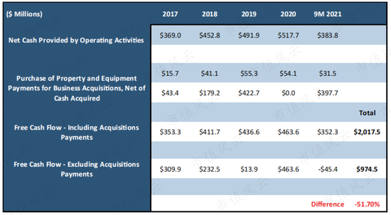 自2017年以來,Playtika似乎總共賺了20億美元的自由現金流。然而,除去收購所支付的費用,公司實際的自由現金流只有9.75億美元。