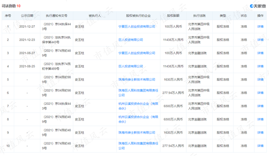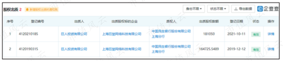 而巨人投資公司已將其上海巨堃網絡51%的股權分兩部分質押給了民生銀行。第一次質押(24%股權)發生在2019年12月12日,第二次質押(27%股權)發生在2021年10月11日。