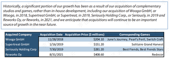 除了監管風險外,股東們減持套現的另一個原因是公司的業務能力下降。IPO結束后,Playtika花了超過10億美元來收購其他遊戲公司。自2018年以來,Playtika已經收購了4家公司。收購其他遊戲似乎是其戰略的核心。