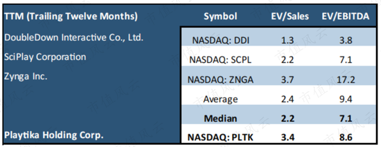 我們找到了幾家Playtika的可比公司,如DoubleDown Interactive Co.,Ltd.(DDI.O),SciPlay Corporation(SCPL.O),Zynga Inc.(ZNGA.O).