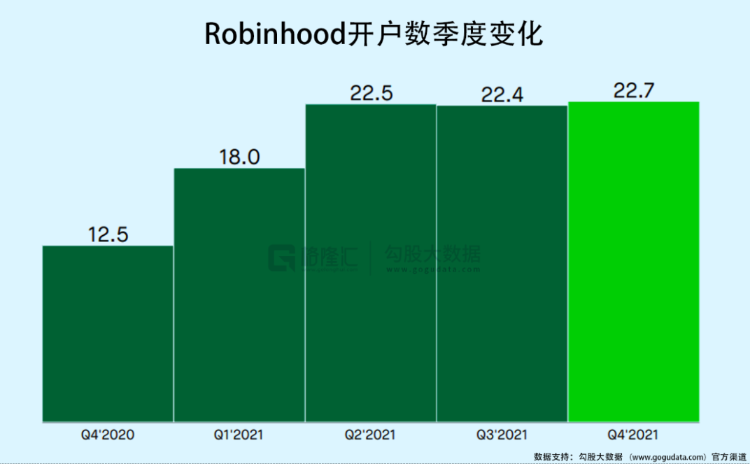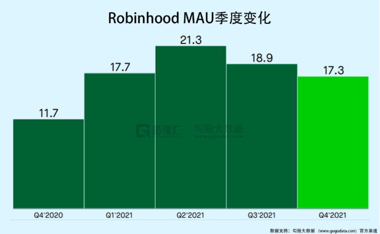 首先看關鍵的用户增長數據。如上圖,Robinhood開户數連續3個季度基本持平,在2000萬出頭;MAU從Q2開始環比一直在下降,從2130萬大幅降至1730萬。這意味着什麼呢?拿最近的互聯網公司來説吧,Meta MAU環比不增長,暴跌26%(當然也有其他因素,詳見此前分析);Netflix季度新增用户指引和預期相差比較大,也是暴跌20%+。