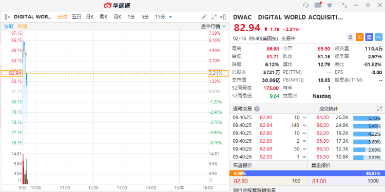 Digital World Acquisition一度漲超6%,截至發稿,漲幅收窄至2%,CF Acquisition Corp VI漲1%。