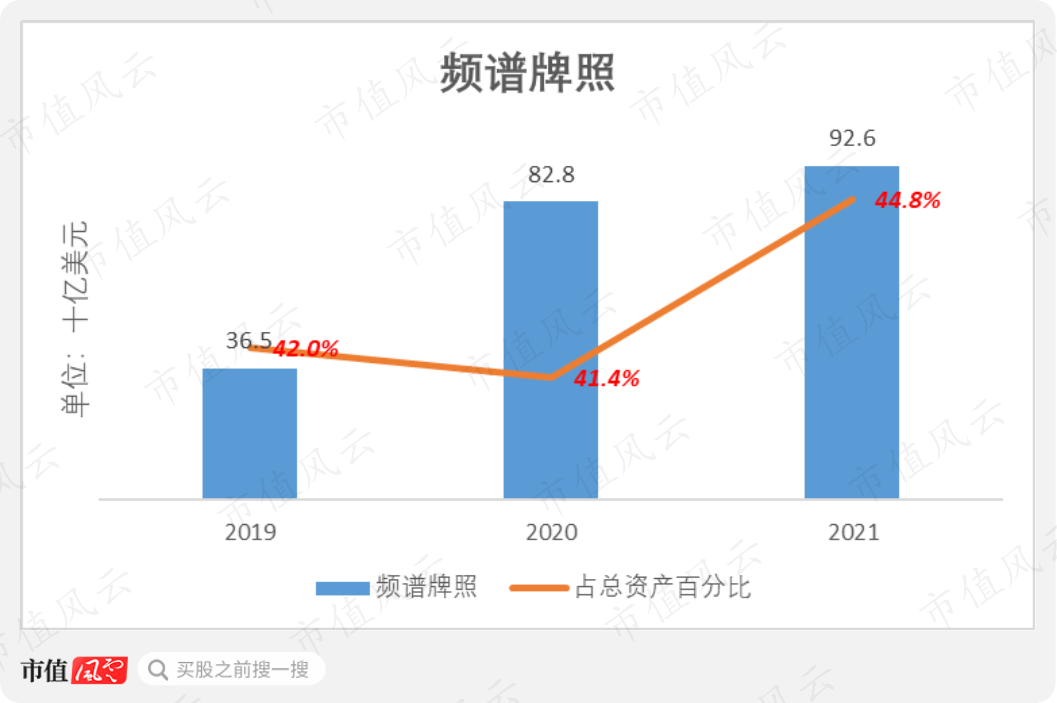 截至2021年末,公司頻譜牌照的賬面價值高達926億美元,其中454億美元來自Sprint。頻譜牌照是公司賬面上最值錢的資產,佔總資產規模的45%。