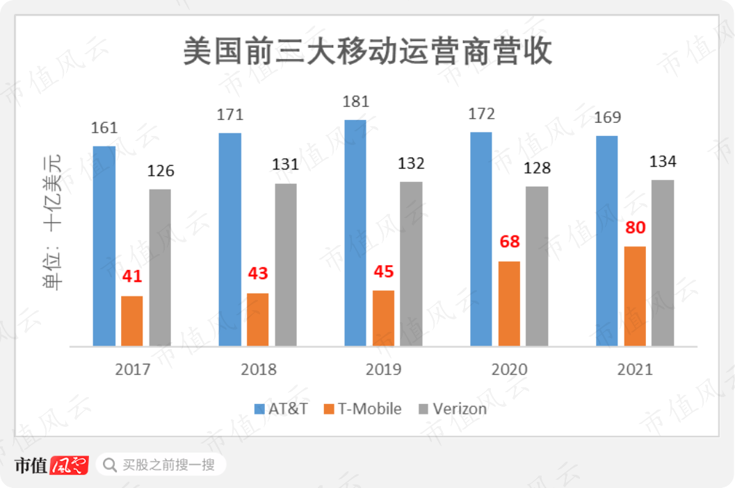 縱觀過去10年,T-Mobile先是超越了Sprint,在美國大型移動運營商中的排名從第四上升至第三,后又一舉收購該競爭對手,形成了美國電信服務業如今「三足鼎立」的局面。