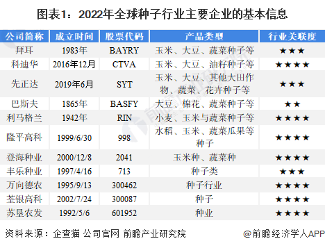 種子行業是以作物種子為對象,以為農業生產提供優良商品化種子為目的,以現代農業科技成果和管理技術為手段,集種子科研、生產、加工、銷售和管理於一體的行業整體。種子行業位於農業產業鏈最頂端,是農業的核心資料。目前,全球種子行業主要公司為拜耳、科迪華、先正達、巴斯夫、隆平高科、荃銀高科等。