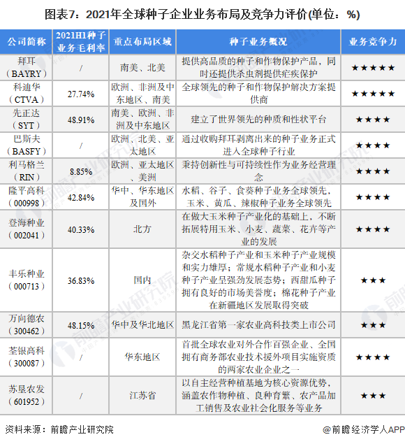 4、全球種子行業企業佈局及競爭力評價