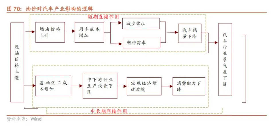 汽車產業鏈而言,總量上,油價的高企會從整體上抑制汽車的需求。三次石油危機期間,全球汽車銷量均有較大幅度下滑。