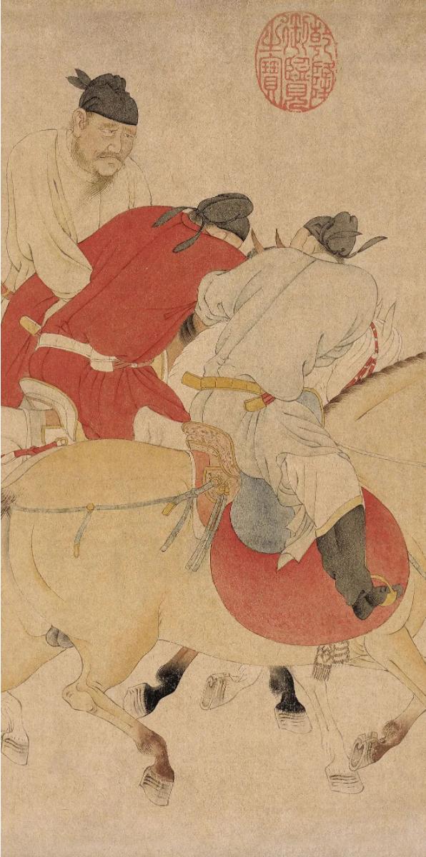 元 任仁發《五王醉歸圖》中大醉欲吐的唐玄宗。