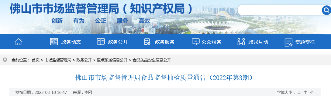 中國質量新聞網訊 近日,廣東省佛山市市場監督管理局發佈2022年第3期食品監督抽檢質量通告。其中抽檢速凍食品3批次,本次抽檢的速凍食品主要為包子、饅頭等熟製品。經檢驗,3批次產品合格。