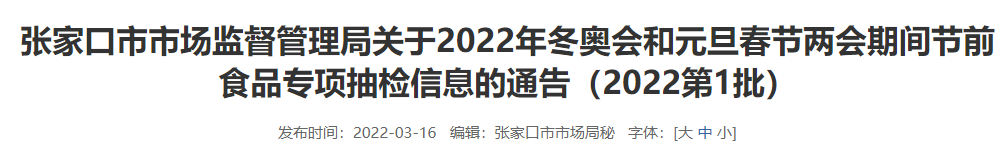 中國質量新聞網訊 2022年3月16日,河北省張家口市市場監督管理局發佈關於2022年冬奧會和元旦春節兩會期間節前食品專項抽檢信息的通告(2022第1批)。據通告,近期張家口市市場監管部門抽檢酒類36批次,全部合格。