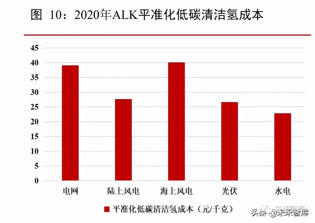 運行負荷、度電成本和電解效率是鹼性ALK電解水制氫技術降本的關鍵因素,目前PEM電解水制氫系統設備成本高出ALK電解系統設備成本的6-7倍。2020年,可再生能源(陸上風電、光伏和水電)電解水制氫,ALK平準化成本約23-28元/kg,採用PEM電解水制氫技術成本約為ALK的1.4倍。