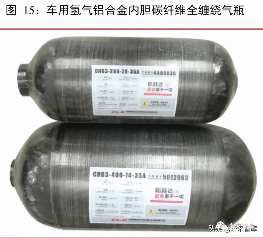 35MPa 儲氫氣瓶儲氣量較低,部分成型受制於整車空間佈置的限制,滿足不了長距離的使用要求,目前 35MPa 儲氫氣瓶主要應用在城市公交、城市物流以及一定區域內短途重卡等領域。70mpa 儲氫氣瓶儲氫量高,主要應用在對續航里程有更高要求的乘用車以及商務車領域。2020 年 4 月,沈陽斯林達安科新技術有限公司研發的48L鋁內膽碳纖維全纏繞氣瓶已正式通過氫循環試驗並取得型式試驗報告,成為國內首例通過氫循環試驗的 70MPa 三型瓶。