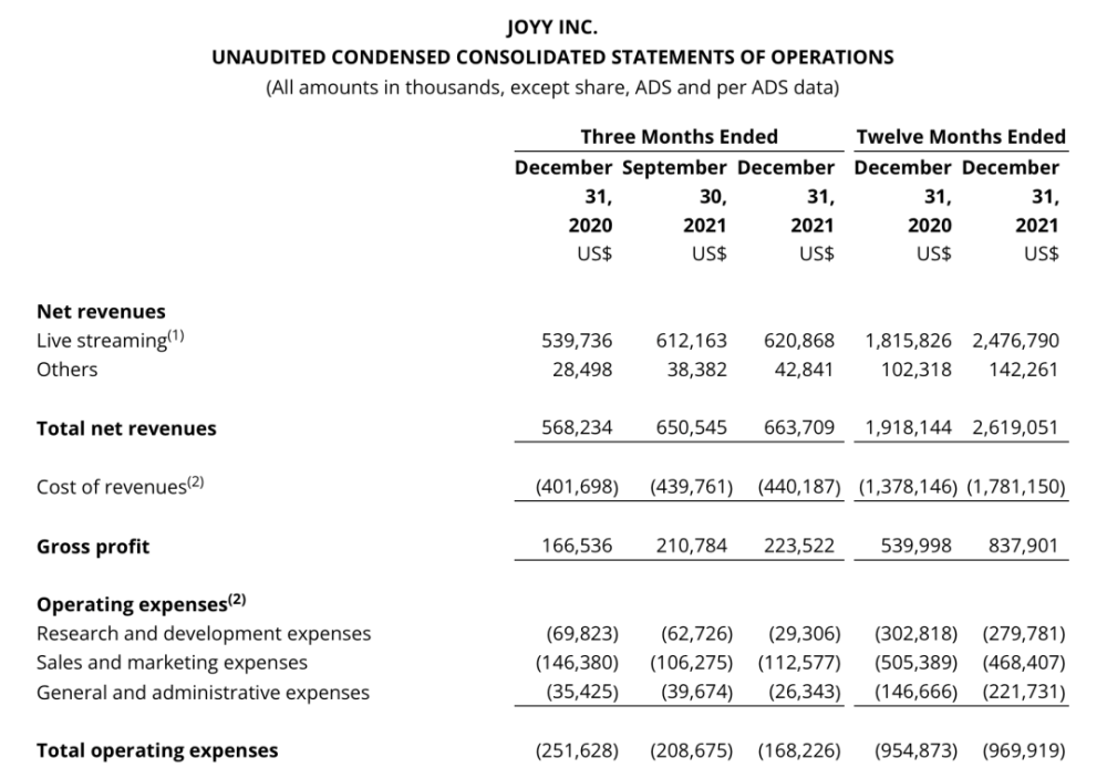運營成本為 1.68 億美元,同比下降 33.1%,運營成本減少的主要原因是減少了 Likee 和 Hago 的營銷成本,這種策略從 Q2 一直持續到了 Q4。