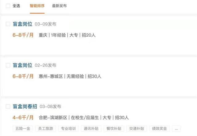 如果説上述還可視為促銷手段,更多的「盲盒」則遊走在違法違規的灰色地帶。部分公司推出「盲盒崗位」,不直接展示崗位內容,讓不知道自己適合方向的求職者「抽盲盒、靈活就職」,提供「復活」機會。事實上,盲盒招聘已涉嫌違反勞動法相關規定,並帶來多種風險。