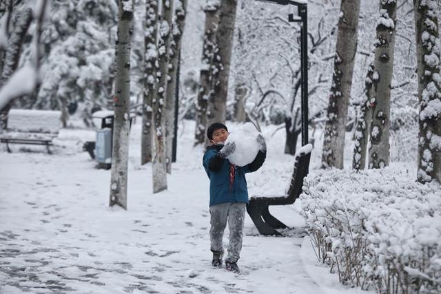 3月18日,南二環綠地,男孩抱起特大號雪球。