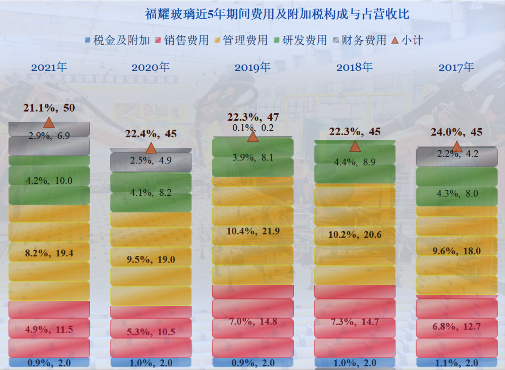 在毛利率上升的情況下,福耀玻璃的總成本佔營收比還下降了0.7個百分點,其管理水平還是在線的。