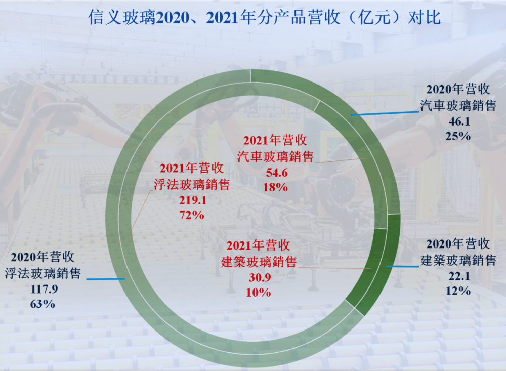 信義玻璃的主要業務是浮法玻璃,佔比72%,汽車玻璃只有18%,建築玻璃還有10%。
